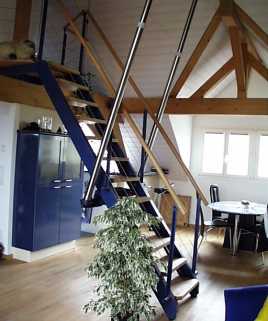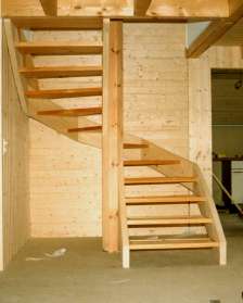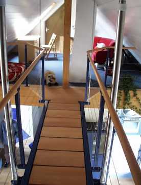 Leichte Konstruktion einer Treppe im Dachstuhlbereich.